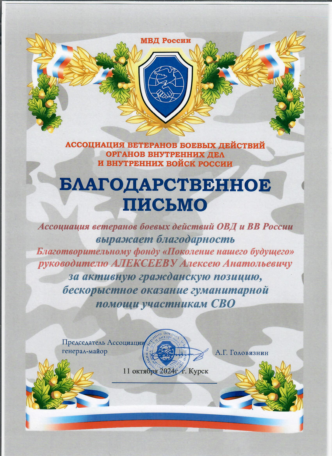 27.10.2025 года Получили Благодарность от наших друзей из Курска, долго оно до нас добиралась.
