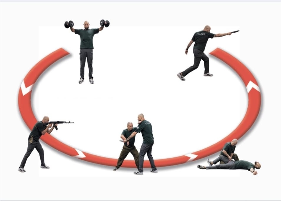 "Практическое атлетическое многоборье». Это спортивныеупражнения, основанные на выполнении специальных циклических упражнений, в том числе со свободными отягощениями или без них, на время, точность и последовательность ( далее–циклические упражнения); на стрельбе с использованием безопасного лазерного оружия и сенсоров, фиксирующих попадания (далее – стрельба); на метании спортивного ножа, на выполнении приемов самообороны. Но и специальные навыки в тактической медицине.