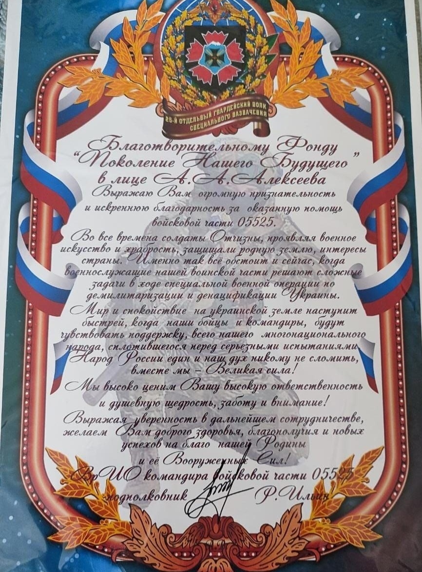 Мы говорим «да!» развитию, мы готовы работать на то, чтобы благодаря нашему Фонду «Поколение будущего» дети даже из самых малодостаточных семей получили возможность для развития, необходимые инструменты, технику, средства. Любой, даже самый малый ваш вклад, важен для нас и будущего нашей великой и необъятной России. Ведь каждый ребёнок - бесценных клад и находка.